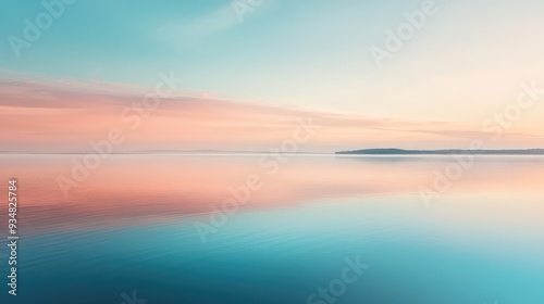 Fototapeta premium Pastel-colored reflections on a calm lake, with the colors blending seamlessly into the horizon like a mirage.