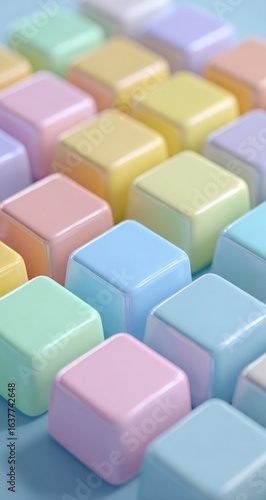 © Nusaibah, Obraz premium Pastel-colored, square, glossy keys arranged in a grid pattern