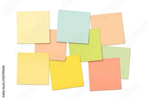 © PNG Kingdom , Fototapeta premium Pastel-colored sticky notes arranged on a transparent background, creating a visual reminder or memo