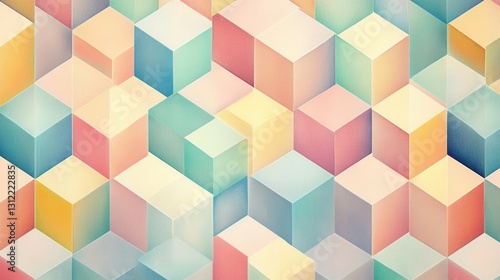 Obraz premium Pastel Cube Pattern Abstract Geometric Watercolor Background