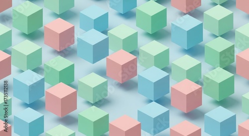 © ShutterBG, Obraz premium Pastel Cube Pattern on Light Blue Background Texture
