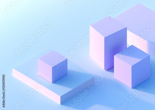 © Minang Art_Studio, Fototapeta premium Pastel cubes and rectangles on light blue background.