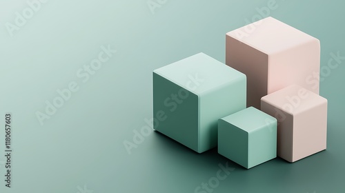 © lisa, Fototapeta premium Pastel Cubes Arranged on a Green Surface