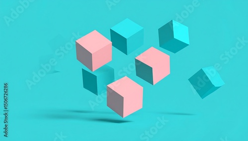 © gentho, Fototapeta premium Pastel Cubes Floating on Teal Background.