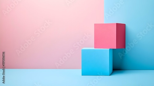 © RenderHive, Obraz premium Pastel cubes studio backdrop; product display