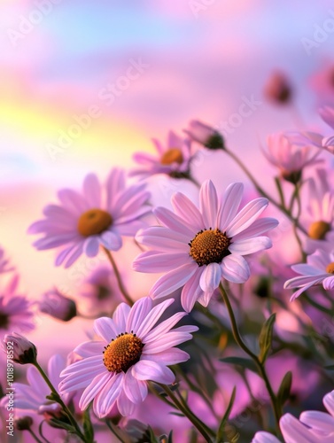 Fototapeta premium Pastel Daisies Blooming Under a Soft Sky