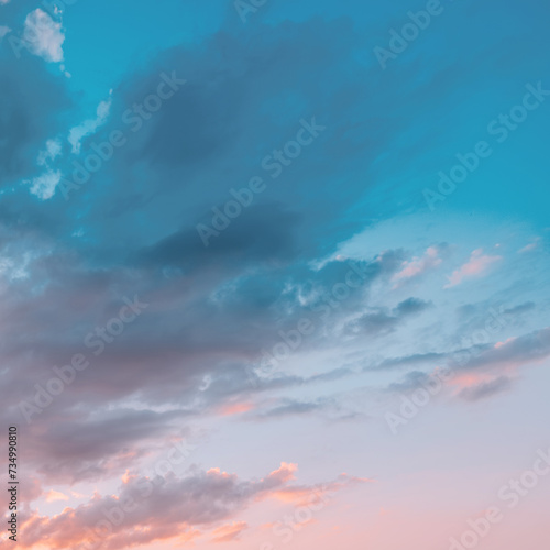 © Юлия Усикова, Fototapeta premium Pastel delicate blue and pink clouds. Sunrise