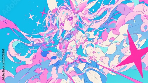 © Whiteney, Fototapeta premium Pastel Dream. A Whimsical Anime Girl in a Candy-Colored World. Vibrant Anime Illustration.