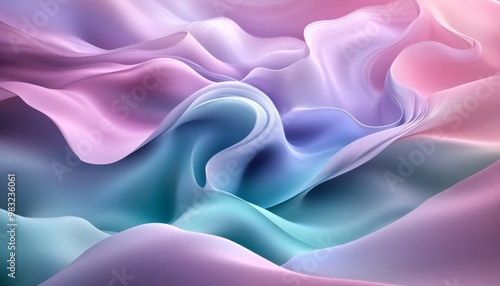 © Ilja, Fototapeta premium Pastel Dreamscape, a 3D abstract background of intertwining waves in pink, green, and lavender.