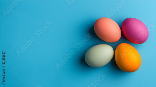 © Zatra, Fototapeta premium Pastel Easter Eggs on Blue Background