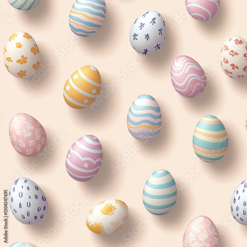© Teaberry Ellie, Obraz premium Pastel Easter Eggs Pattern – AI-Generated Festive Design