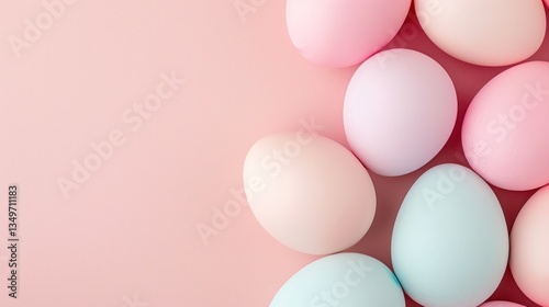 © Oksana, Fototapeta premium Pastel Eggs Arrangement On Soft Pink Background
