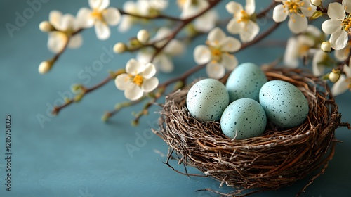 Fototapeta premium Pastel Eggs Nest Spring Blossoms