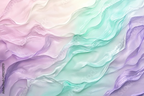 © jambulart, Obraz premium Pastel fabric waves, flowing, translucent, soft.