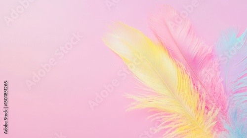 © rich, Obraz premium Pastel feathers on pink background, soft light, spring design