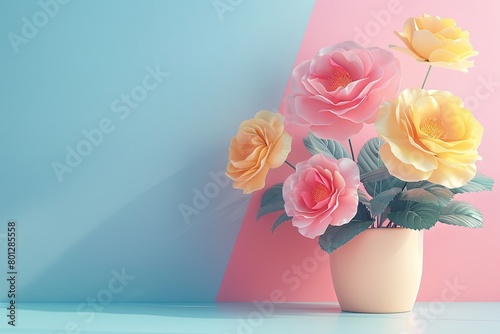 © Pandadeda, Obraz premium Pastel Floral Arrangement with Roses and Petals