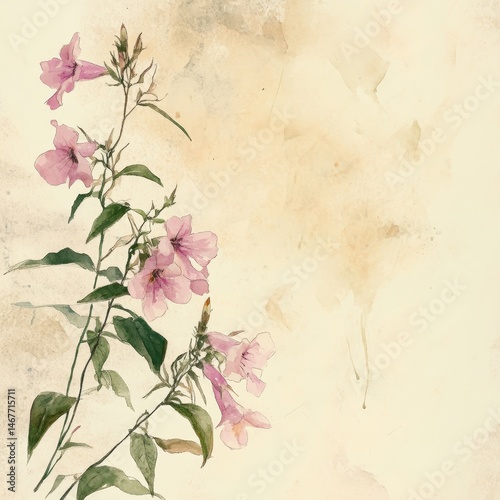© BabyEyes, Naklejka premium Pastel floral illustration on aged paper.