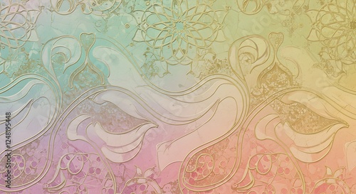 © abangaboy, Obraz premium Pastel Floral Pattern Background with Gold Embellishments