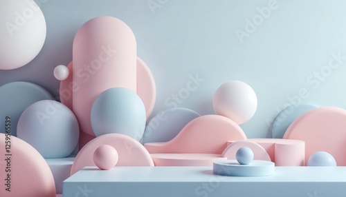 © Aimag, Fototapeta premium Pastel Geometry Serenity Still Life Product Display Soft Light