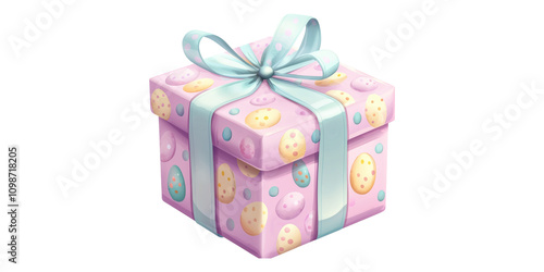 © sweet_mellow, Fototapeta premium Pastel Gift Box with Easter Egg Pattern Isolated on Transparent Background