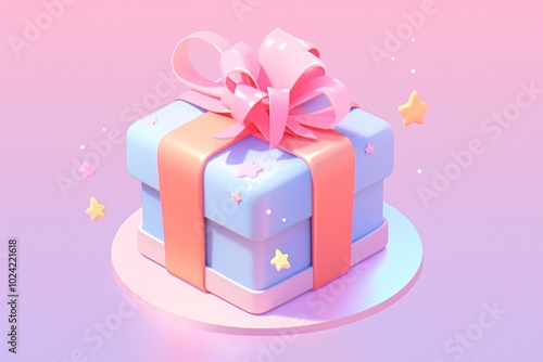 © upnowgraphics, Obraz premium Pastel Gift Box with Pink Bow and Stars on Pink Background
