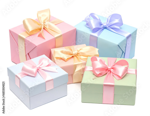 Fototapeta premium Pastel Gift Boxes on White Background