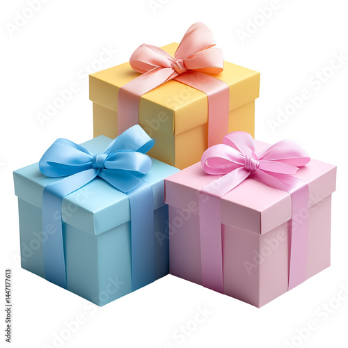 © afikurrahman, Obraz premium Pastel Gift Boxes with Bows a Festive Surprise,