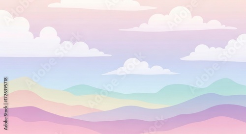 Fototapeta premium Pastel Gradient Landscape with Soft Clouds and Mountains