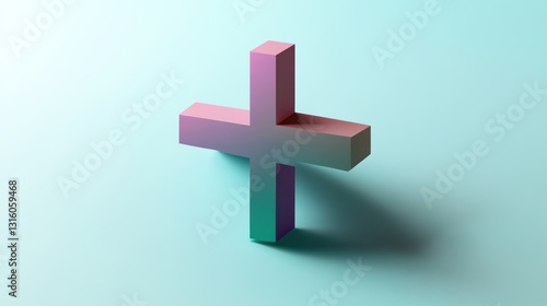 © abdul, Obraz premium Pastel Gradient Plus Sign 3D Render Minimalist Design Soft Background