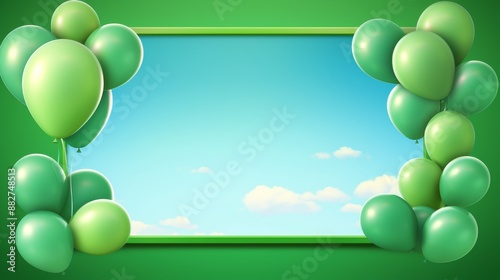 © sorin, Fototapeta premium Pastel green balloon border frame for birthday grand opening sale poster design