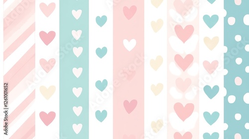 Fototapeta premium Pastel Hearts Stripes and Dots Pattern Design