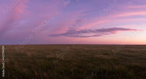 © FITRA, Obraz premium Pastel Horizon: Prairie Grassland Beneath Dreamy Sky at Twilight