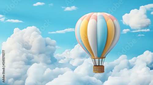 Fototapeta premium Pastel Hot Air Balloon Soaring Through Fluffy Clouds: A Digital Illustration...