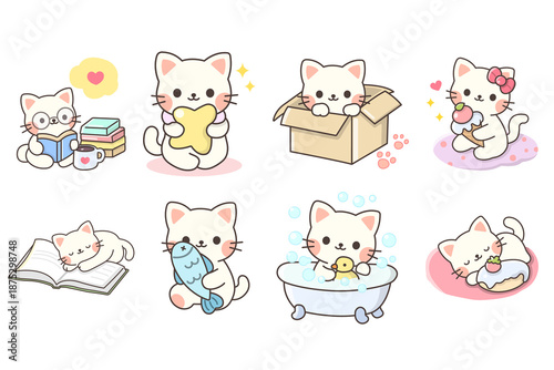 Obraz premium Pastel Kawaii Kitten Illustration Set, Cute Cat Clipart