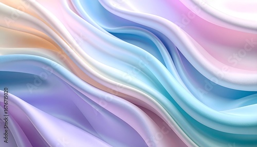 © Desmon, Fototapeta premium Pastel layered silk fabric waves in gradient rainbow colors