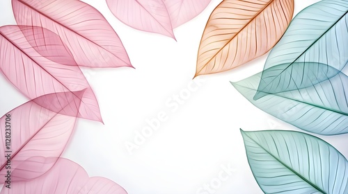 © terat, Obraz premium pastel leaf frame, white background - pastel colors