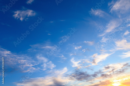 Obraz premium Pastel light cirrus clouds in the blue sky during dawn sunset sunrise, sky...