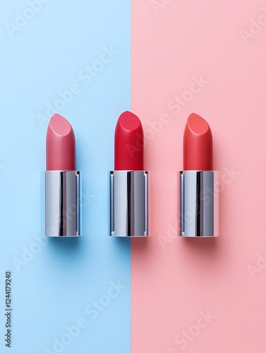 © Nipawan, Obraz premium Pastel Lipstick Shades on Minimal Cosmetic Background