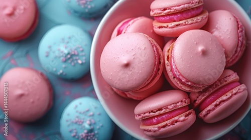 Obraz premium Pastel macaron assortment displaying delicate confectionery treats, close up