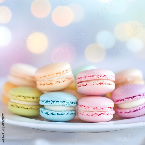 © Atirut, Obraz premium Pastel Macarons on a Plate.