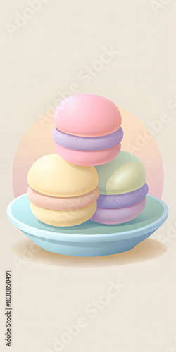 Obraz premium Pastel Macarons on Plate with Gradient Background