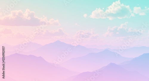 © Putri Lestari, Fototapeta premium Pastel Mountain Range Landscape Soft Sky Clouds