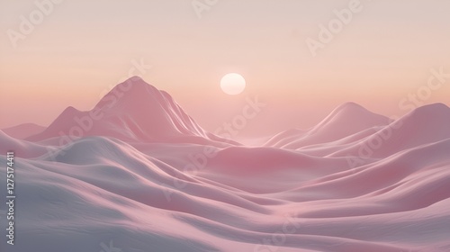 Fototapeta premium Pastel Mountains Sunrise, Digital Landscape, Abstract Nature, Stock Photo