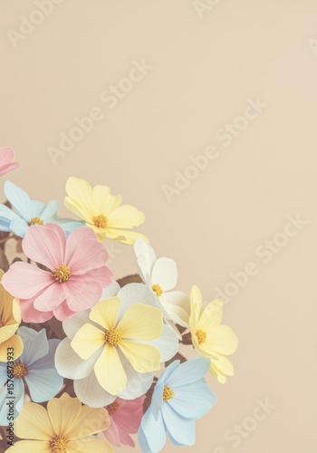Naklejka premium Pastel Paper Flower Bouquet on Beige Background