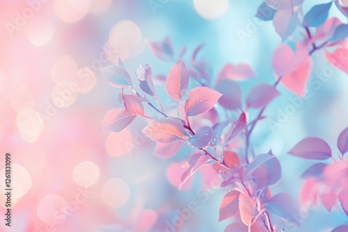 Fototapeta premium Pastel Pink And Blue Leaves Branch Soft Light Dreamy Nature Background