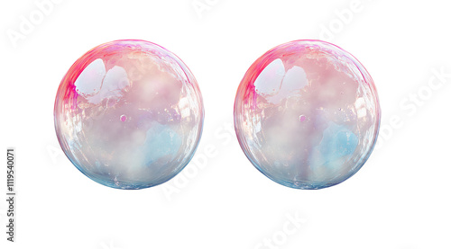 © Wasai, Obraz premium pastel pink and blue soap bubbles on transparent background