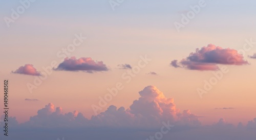 Fototapeta premium Pastel Pink and Orange Sunset Sky with Fluffy Clouds