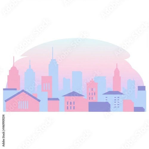 Fototapeta premium Pastel Pink and Purple City Skyline Illustration