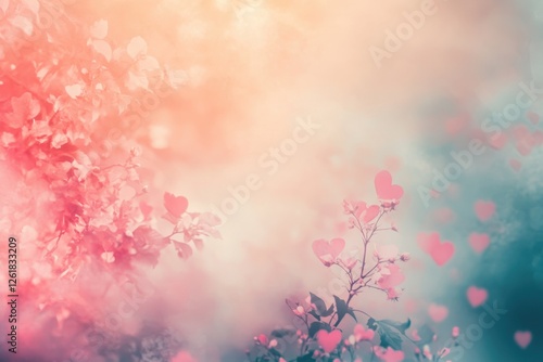 Fototapeta premium Pastel Pink and Red Heart Shaped Leaves on Soft Focus Background