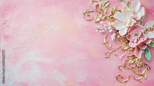 © Seputih, Fototapeta premium Pastel pink backdrop with sculpted flowers